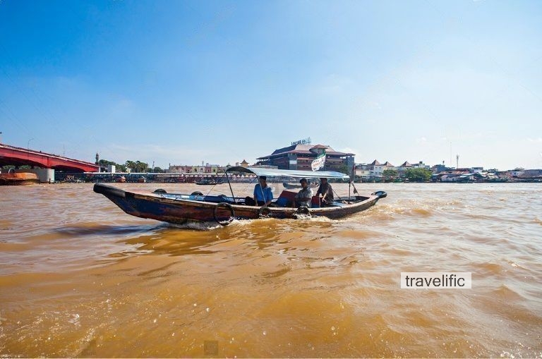 As you cruise the river, you see floating houses and restaurants, Ki Merogan Mosque, Benteng Kuto Besak fortress and local markets.